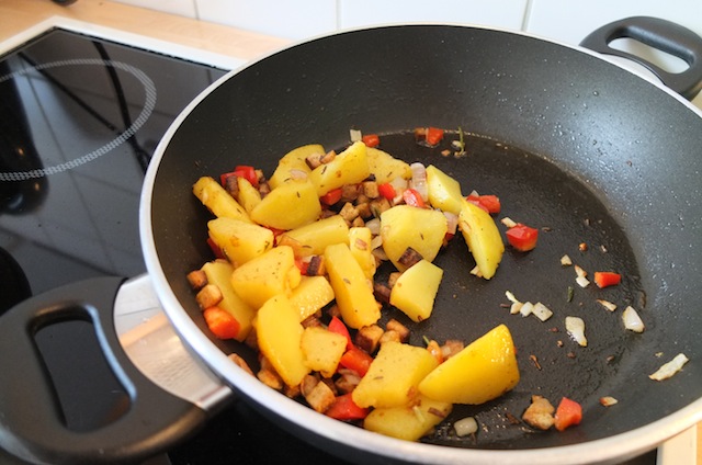 - Bauernfrühstück (vegan): Gemüse, Kartoffeln und Räuchertofu braten